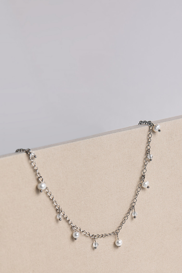 Чокер с жемчужными и хрустальными бусинами — элегантный чокер с подвесками из жемчуга и хрустальных ронделей. На колье — удобная застежка-лобстер. Чокер легко впишется в любой образ.