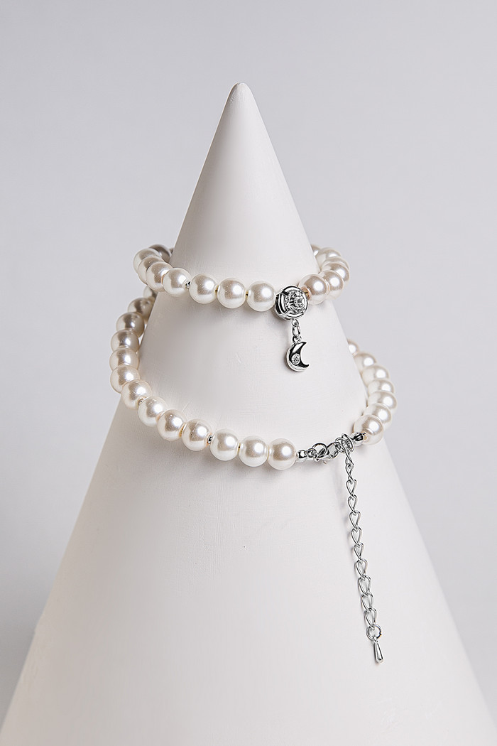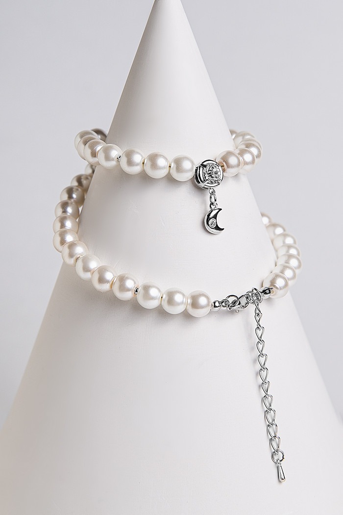 Колье с подвеской луна — трендовое колье с инкрустированной родированной подвесокой Луна и межбусинами с фианитами, разделенными высококачественными бисером Miuki. На колье — удобная застежка-лобстер.